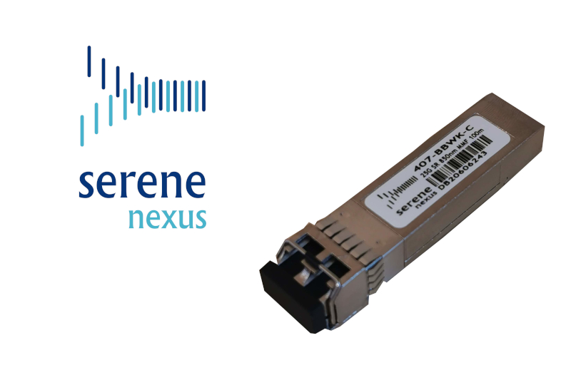 Wkładka Serene Nexus 407-BBWK umożliwia transmisję danych z prędkością 25G na dystansie 100 metrów. Urządzenie wykorzystuje do transmisji światłowód wielomodowy.